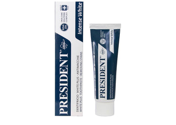Le dentifrice PRESIDENT Intense White (RDA 200) élimine les taches tenaces causées par le café, le thé, le tabac ou certains médicaments. Grâce à des abrasifs marins micronisés issus de coquilles de diatomées, il redonne aux dents leur blancheur naturelle en quelques utilisations.